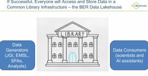 Kjiersten’s team saw the potential presented by this idea. As a user facility that was already generating and collating a lot of BER data, the opportunity for JGI was to create a data lakehouse for experimental and derived data, serving researchers as well as AI assistants, not just for JGI but for the larger BER ecosystem.